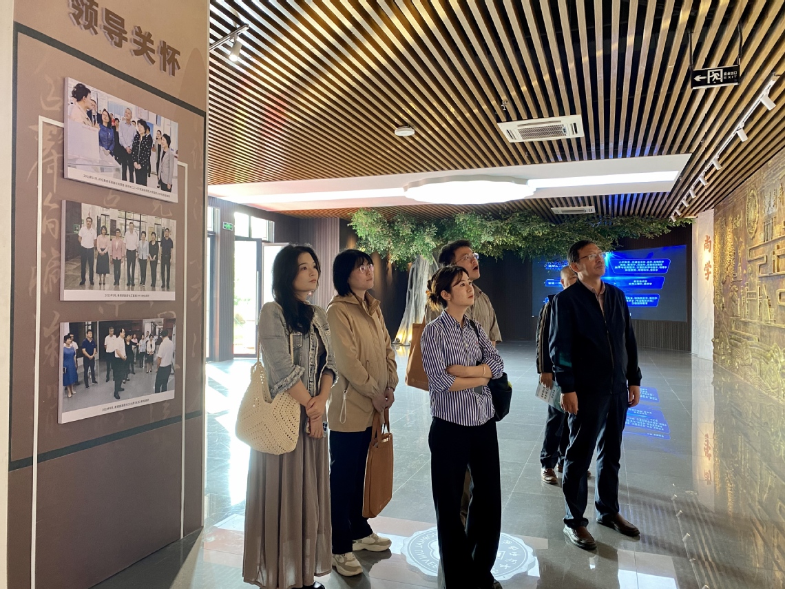 2025年12月18日上午,中南大学档案馆(校史馆)综合办主任徐晏清一行四人来到我馆进行调研。在馆长史振卿的陪同下,来访嘉宾实地参观了我校校史馆,深入了解我馆在校史展陈设计、档案数字化建设等方面的具体实践。